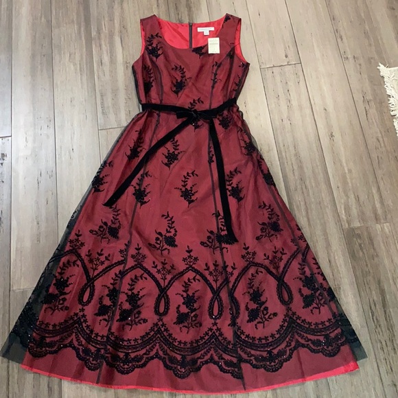 Coldwater Creek Dresses Coldwater Creek Mesh Overlay Dress Maxi Redblack Poshmark
